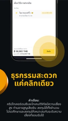 การลงทุนในสินทรัพย์ดิจิทัลมีความเสี่ยงสูง ผู้ลงทุนควรศึกษาข้อมูลอย่างรอบคอบและทำความเข้าใจถึงความเสี่ยงที่เกี่ยวข้องก่อนตัดสินใจลงทุน Binance TH มุ่งมั่นที่จะเป็นมากกว่าแพลตฟอร์ม แต่เป็นพันธมิตรที่จะช่วยให้คุณเติบโตและเข้าใจโลกการเงินยุคใหม่ได้อย่างแท้จริง