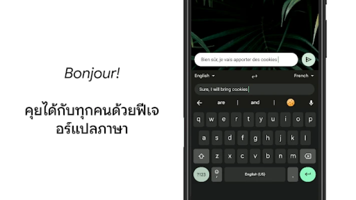 ยกระดับการสนทนาของคุณให้ไร้พรมแดนด้วย Gboard ด้วยฟังก์ชันพิมพ์หลายภาษาที่ไม่ต้องคอยสลับภาษาเองให้ยุ่งยากอีกต่อไป Gboard จะแก้ไขคำและเสนอคำแนะนำจากทุกภาษาที่คุณเปิดใช้ได้อย่างชาญฉลาด พร้อมการแปลภาษาผ่าน Google แปลภาษาแบบเรียลไทม์ภายในแป้นพิมพ์ ช่วยให้การสื่อสารข้ามภาษาเป็นไปอย่างราบรื่นไม่มีสะดุด นอกจากนี้ การค้นหาอีโมจิ* ยังช่วยให้คุณแสดงอารมณ์ได้อย่างรวดเร็ว และค้นหา GIF* ที่ตรงใจเพื่อสื่อสารความรู้สึกของคุณผ่านภาพเคลื่อนไหวได้อย่างมีสีสัน (คุณสมบัติบางอย่าง เช่น การเขียนด้วยลายมือ การค้นหาอีโมจิ และ GIF อาจไม่รองรับบนอุปกรณ์ Android Go)