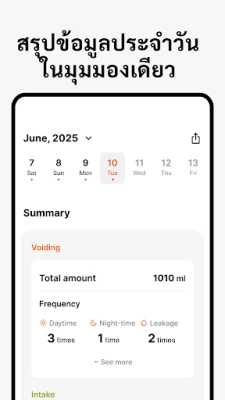 ค้นพบข้อมูลเชิงลึกเกี่ยวกับสุขภาพกระเพาะปัสสาวะของคุณ เพื่อการดูแลสุขภาพที่ดียิ่งขึ้นในทุกวัน ช่วยให้คุณติดตามการเปลี่ยนแปลงและเข้าใจรูปแบบต่างๆ ได้อย่างง่ายดายและสะดวกสบาย มอบความสบายใจในการจัดการสุขภาพส่วนตัว